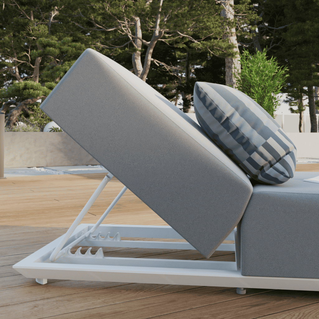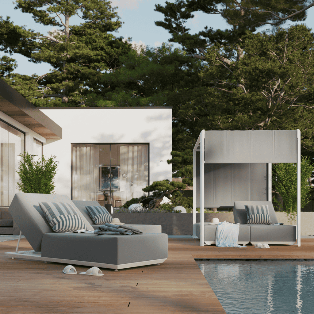Pensada para el descanso prolongado, esta asoleadora crea un espacio donde relajarse y desconectar del ritmo diario.