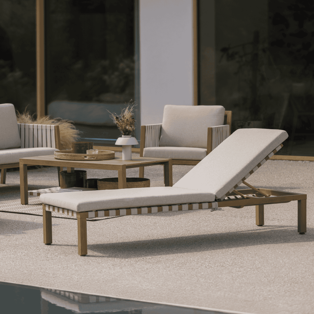 La asoleadora Okinawa está pensada para disfrutar el exterior con calma: lectura, bronceo o siesta. Naterial la diseña para que se vea elegante y se sienta cómoda todos los días.