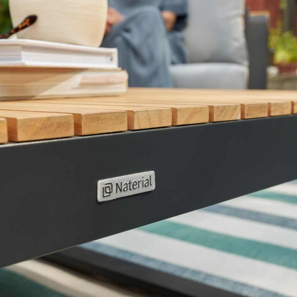 Naterial apuesta por combinaciones de materiales resistentes en PERSEA, adaptadas al uso cotidiano en exterior.
