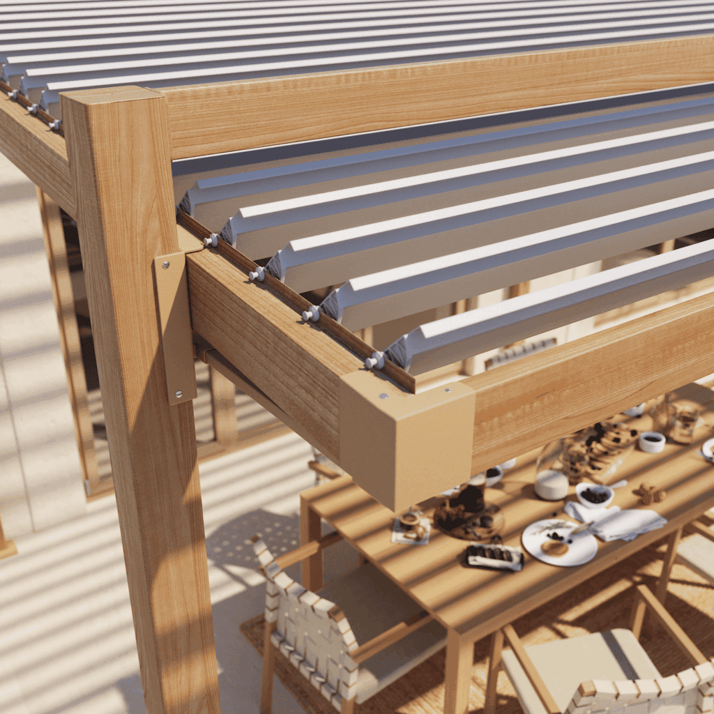Con Clima Odyssea, disfrutas una sombra regulable con estética cálida efecto madera y un aire muy arquitectónico.