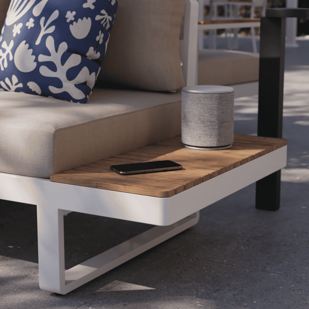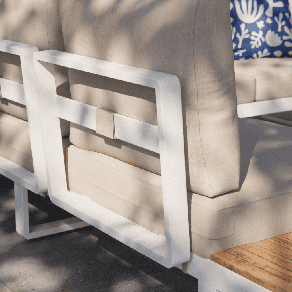 La serie Persea refleja la experiencia de Naterial combinando aluminio resistente y teca FSC en un diseño equilibrado. Ideal para crear ambientes exteriores coherentes y elegantes.