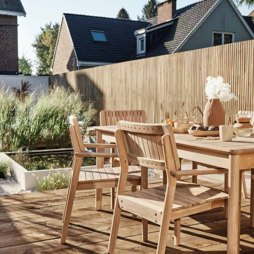 La serie Atlas refleja el saber hacer de Naterial en muebles de madera FSC pensados para el exterior.