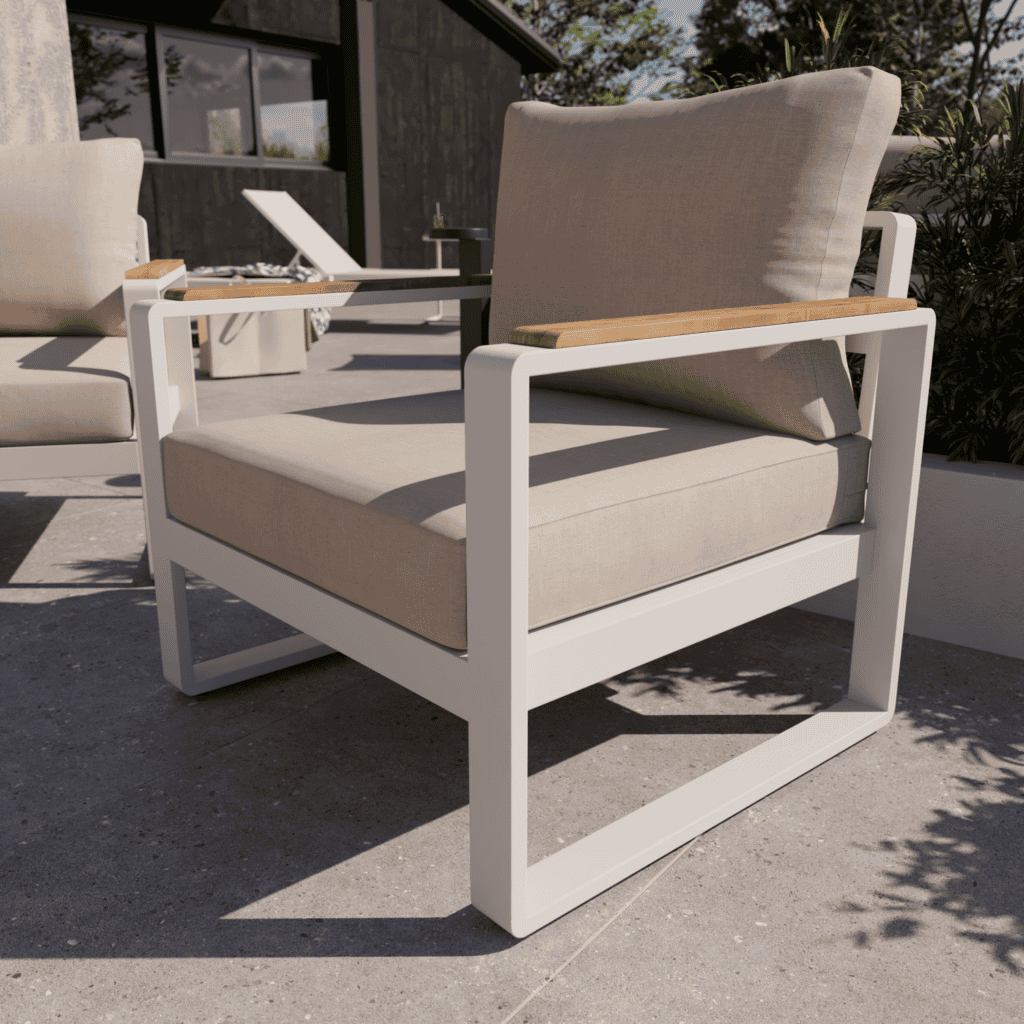 Ideal para completar el lounge, invita a sentarse cómodo y disfrutar del exterior con estilo.