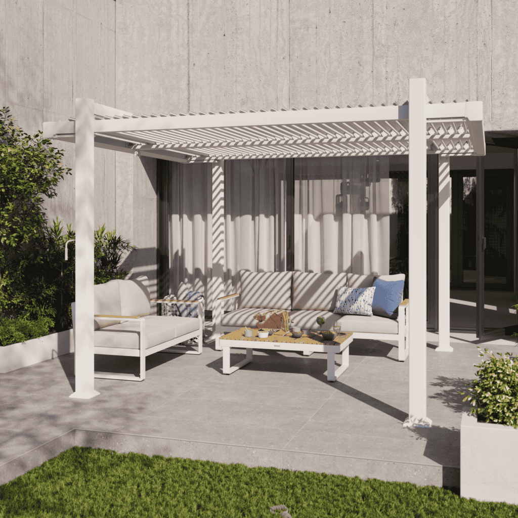 Naterial diseña la serie Persea como un conjunto armonioso, pensado para crear salones exteriores duraderos y elegantes.