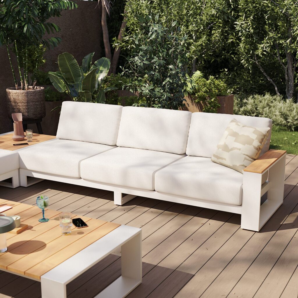 Módulo de sofá de 3 personas para set de jardín de teca y aluminio Rafi