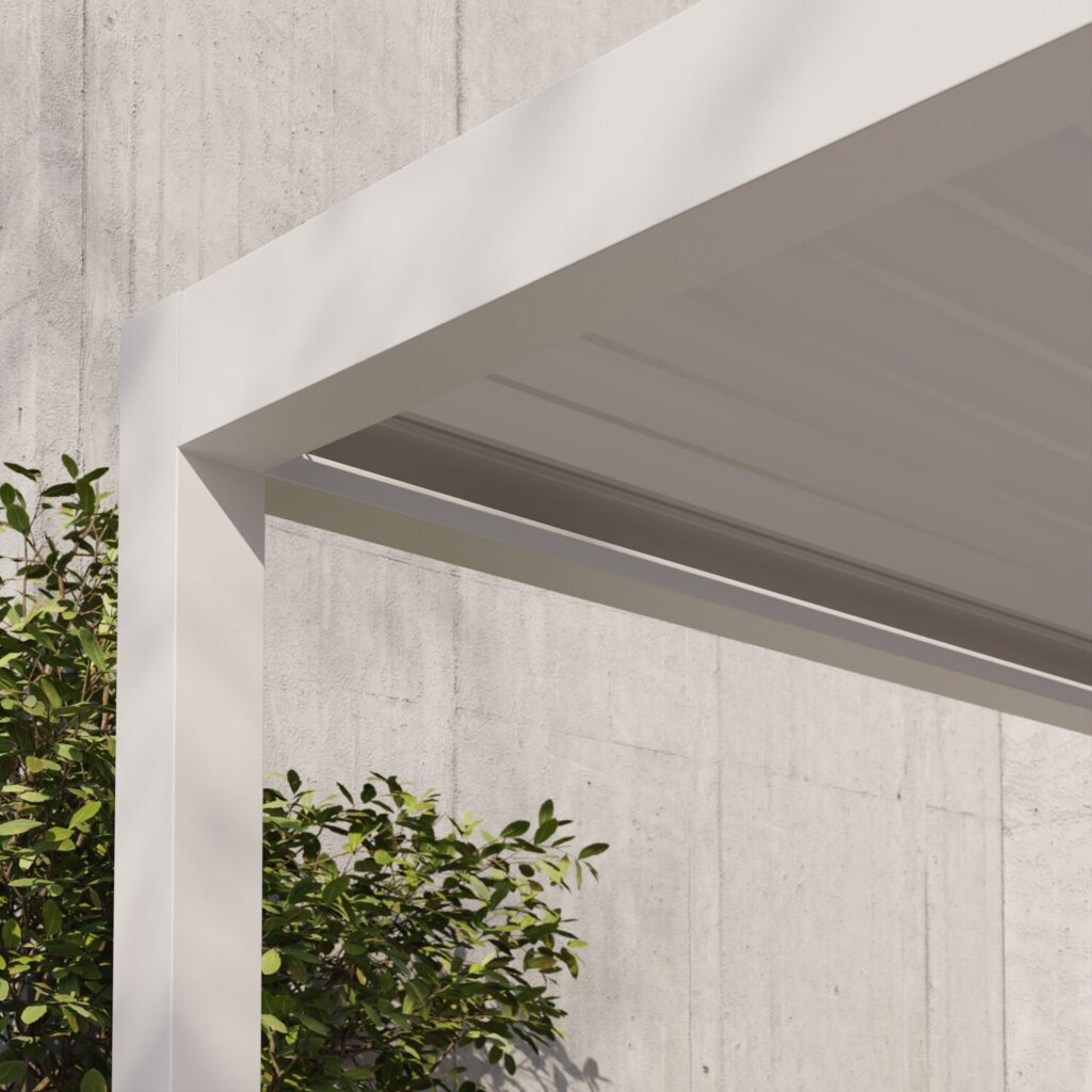 El diseño contemporáneo de la pérgola adosada Clima Astra añade estilo a tu espacio exterior, permitiéndote resguardar una mesa, un spa o muebles de jardín. Modular, se puede complementar con un toldo de textilene a lo largo de su longitud para mayor protección del sol bajo y las miradas indiscretas. Esta pérgola está disponible en antracita y blanco. Fabricada con una estructura íntegramente de aluminio (marco y lamas), con un 50% de aluminio reciclado, garantiza calidad y durabilidad. El aluminio es un material ideal para exteriores; no se oxida y es resistente a la intemperie y a los rayos UV, lo que garantiza un uso duradero temporada tras temporada. Sus lamas de doble pared ofrecen una resistencia superior a las condiciones invernales.