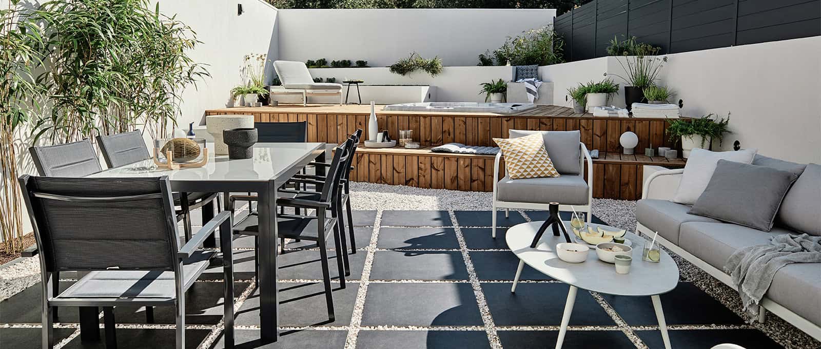 Même sur une petite surface, donner du rythme permet de mieux l’habiter. Une jardinière haute, un tapis d’extérieur ou un duo de fauteuils bien placés suffisent à créer des zones : un coin repas, un coin détente, un coin lecture… sans jamais tout enfermer. Le jardin reste ouvert, fluide, mais organisé, pour que chaque instant ait sa place.