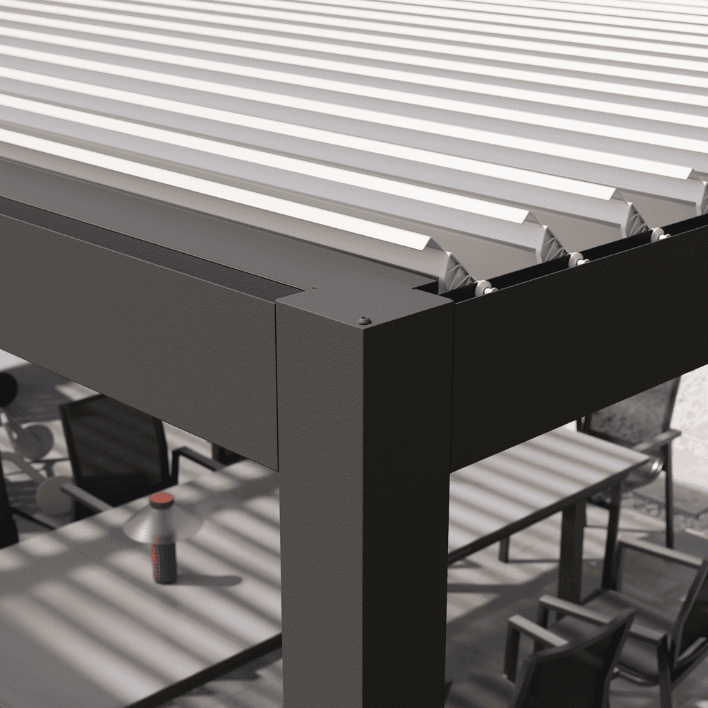 Évolutive et personnalisable, la pergola Clima Astra s’adapte à toutes les configurations. Cette extension dédiée se fixe à votre pergola principale, permettant de doubler la surface couverte. Proposée en anthracite et blanc, cette extension tout en aluminium ne rouille pas, et résiste aux rayons UV et aux intempéries, pour un extérieur durablement protégé. Ses lames double paroi offrent une résistance supérieure face aux conditions hivernales. L’extension peut également recevoir des stores en textilène ainsi que des panneaux à lames orientables en aluminium sur tous les côtés, vous protégeant du soleil rasant ou des vis-à-vis. Conçue avec une structure entièrement en aluminium (structure et lames) dont 50% d’aluminium recyclé dans la structure, cette pergola est gage de qualité et résistance.