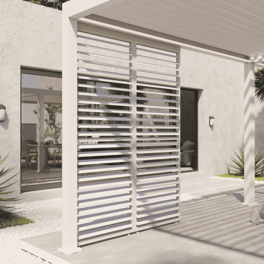 Le panneau à lames orientables Astra s’intègre parfaitement à votre pergola grâce à son design épuré et sa couleur blanche. Vous pouvez ainsi créer une ambiance chaleureuse et intimiste sous votre pergola. Modulable, il peut être fixé seul à la structure, ou en lot pour créer un pan de mur complet. Ce modèle est conçu pour se fixer à la pergola Clima astra 3x4m (longueur et largeur). D’autres modèles sont disponibles pour accessoiriser les pergolas Clima dans d’autres dimensions et d’autres coloris.