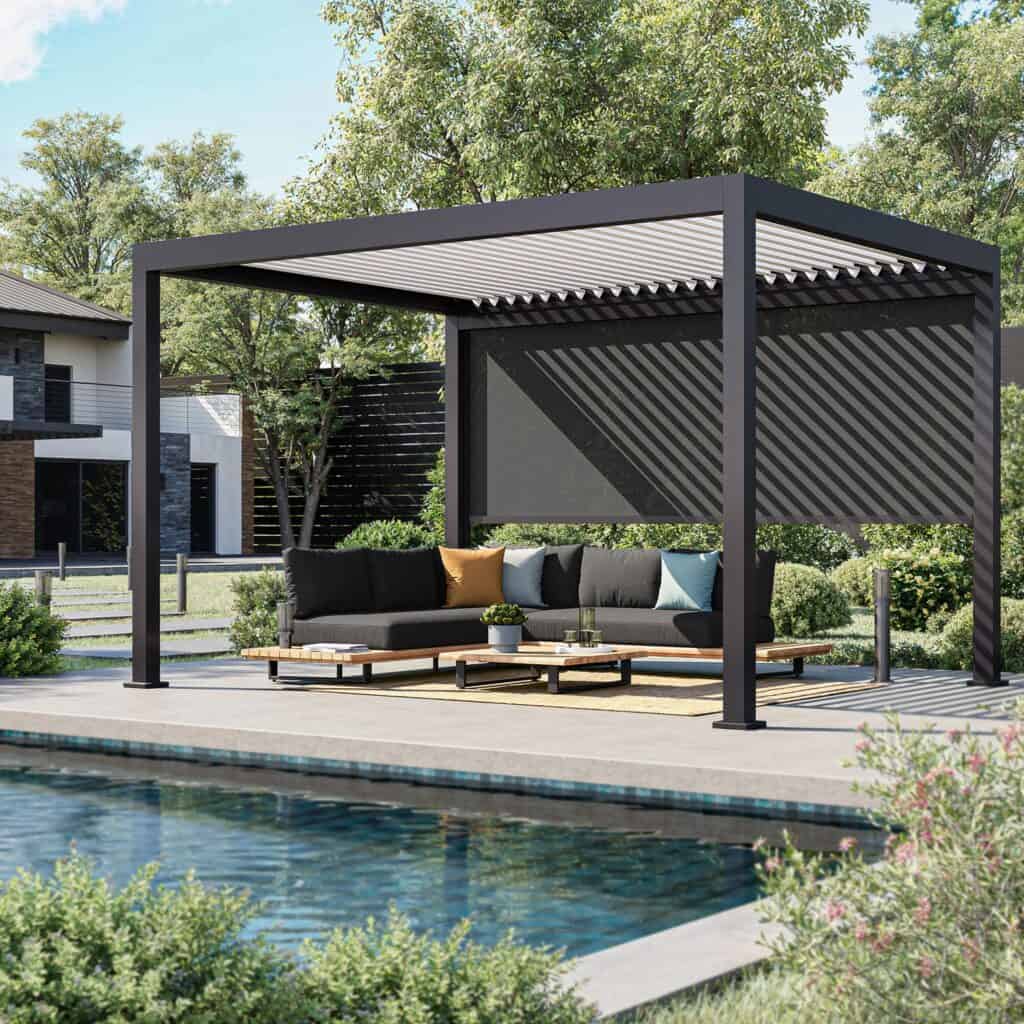 Le coloris du rideau et sa conception en aluminium et textilène lui permet de conserver le style design de votre pergola Astra, apportant du style à votre extérieur tout en vous permettant de la combiner avec la plupart des mobiliers de jardin.