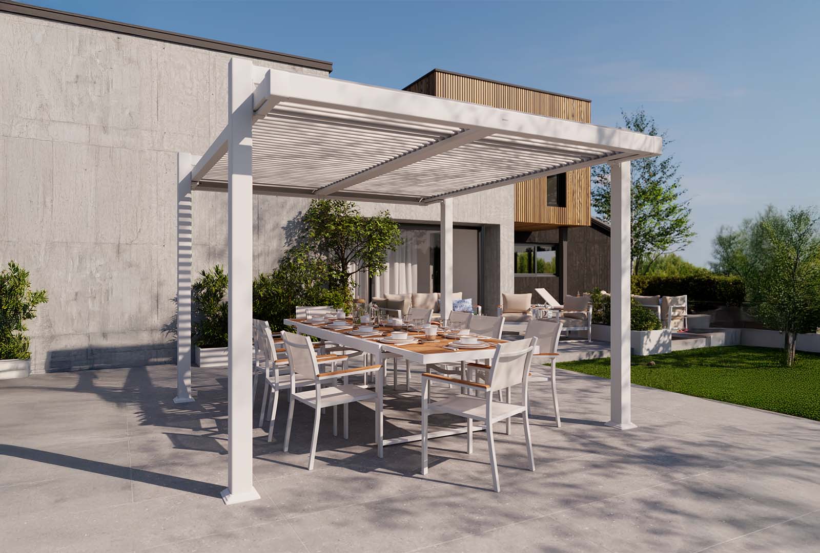 Une collection รฉlรฉgante, bi-matiรจre, disponible en blanc et anthracite pour apporter un look moderne ร  vos espaces extรฉrieurs