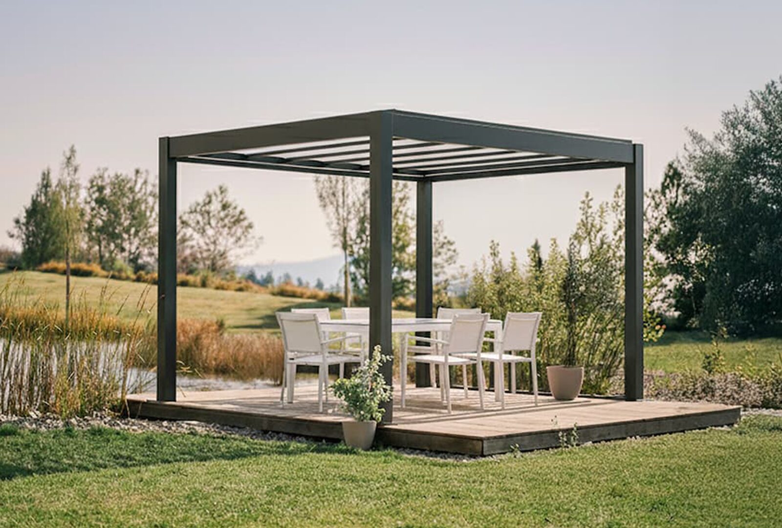 Lâminas orientáveis, mobiliário adequado, ambiente acolhedor: sob uma pérgola, cada detalhe conta. Aqui estão as nossas ideias para transformar o seu espaço exterior num verdadeiro espaço de vida, da manhã à noite, durante todo o ano.