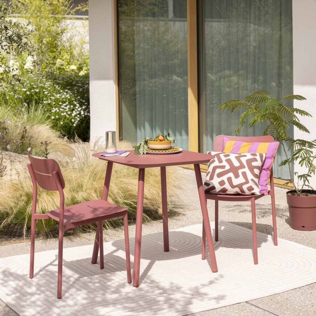 A gama Anafi distingue-se pelas suas linhas curvas e cores vibrantes, trazendo um toque de modernidade. Disponível em vermelho vivo e azul pastel para iluminar pequenos espaços exteriores, esta série trará um toque colorido e acolhedor à sua varanda ou pátio. Combine a cadeira Anafi com a mesa de exterior para um conjunto de design harmonioso.