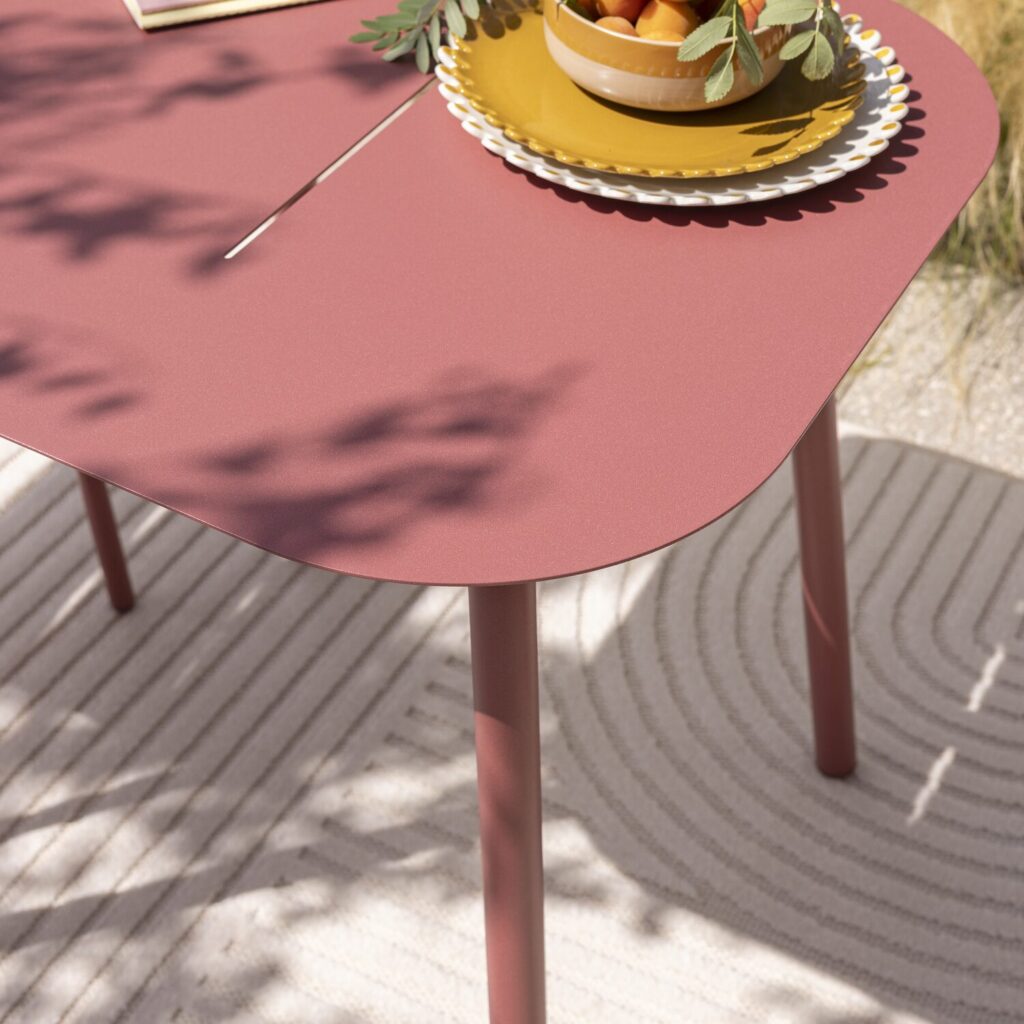 Prática para o uso diário, basta um simples pano húmido para limpar a sua mesa de jardim. Sua estrutura é feita de alumínio, sendo 50% alumínio reciclado, o que a torna resistente à ferrugem e às intempéries. No inverno, considere cobrir seus móveis de jardim com uma capa Natural para protegê-los da sujeira e preservar sua qualidade.