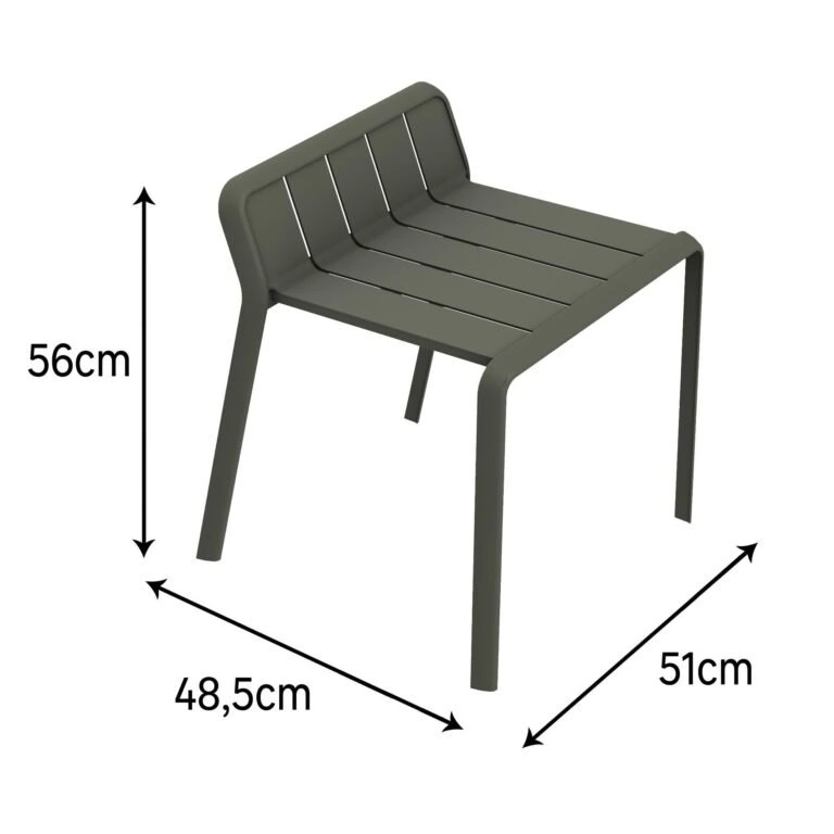 Su diseño de aluminio lo convierte en un banco ligero y resistente. Con sus tornillos de acero inoxidable, puede estar en el exterior todo el año. Se puede añadir una simple funda protectora para protegerlo de la suciedad del invierno. En el día a día, un paño húmedo y un producto neutro bastan para el mantenimiento de tu banco.