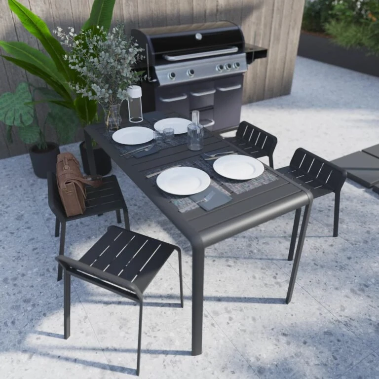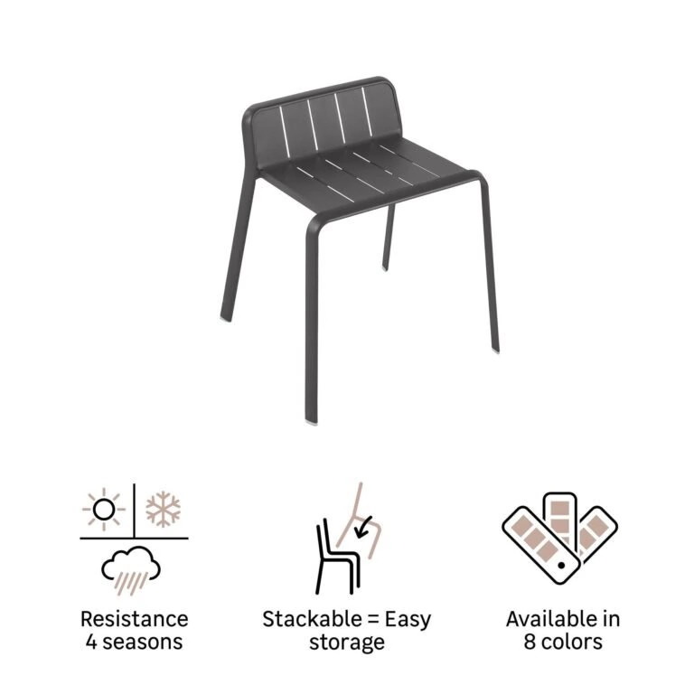 Su diseño de aluminio lo convierte en un banco ligero y resistente. Con sus tornillos de acero inoxidable, puede estar en el exterior todo el año. Se puede añadir una simple funda protectora para protegerlo de la suciedad del invierno. En el día a día, un paño húmedo y un producto neutro bastan para el mantenimiento de tu banco.