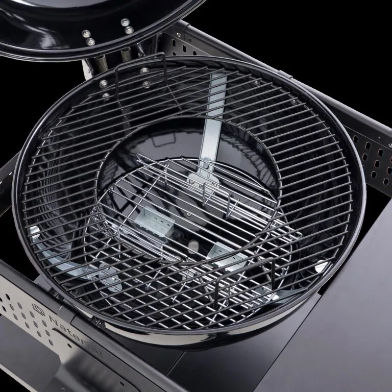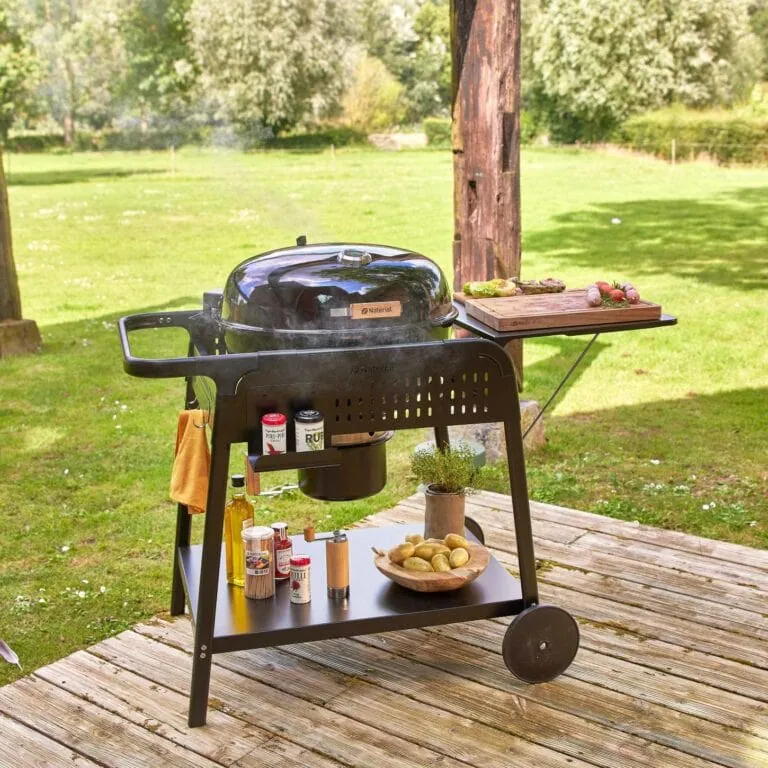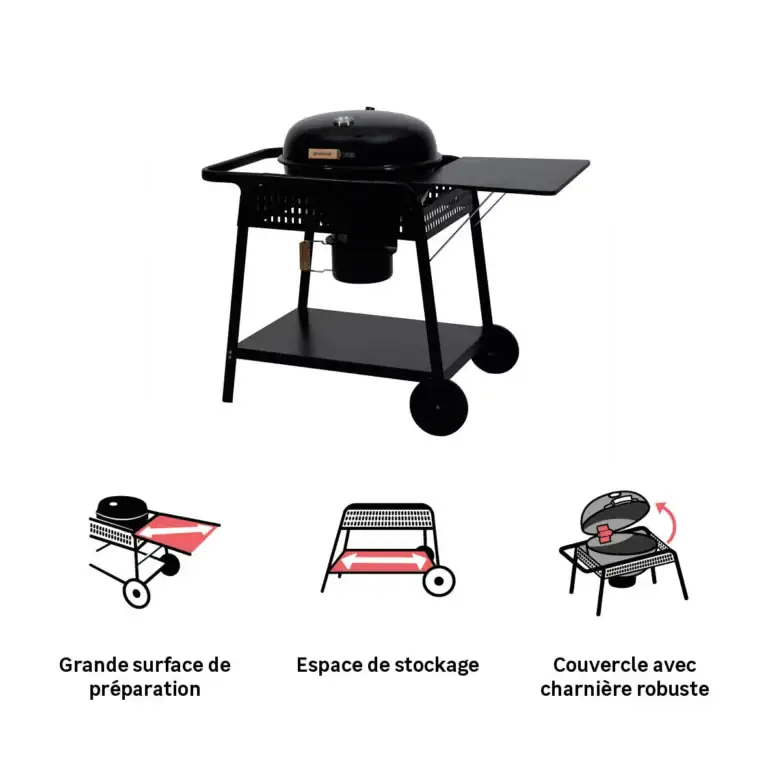 Esta robusta y elegante barbacoa de carbón, con su acabado en negro, es ideal para cocinar comidas agradables para 6 a 10 personas