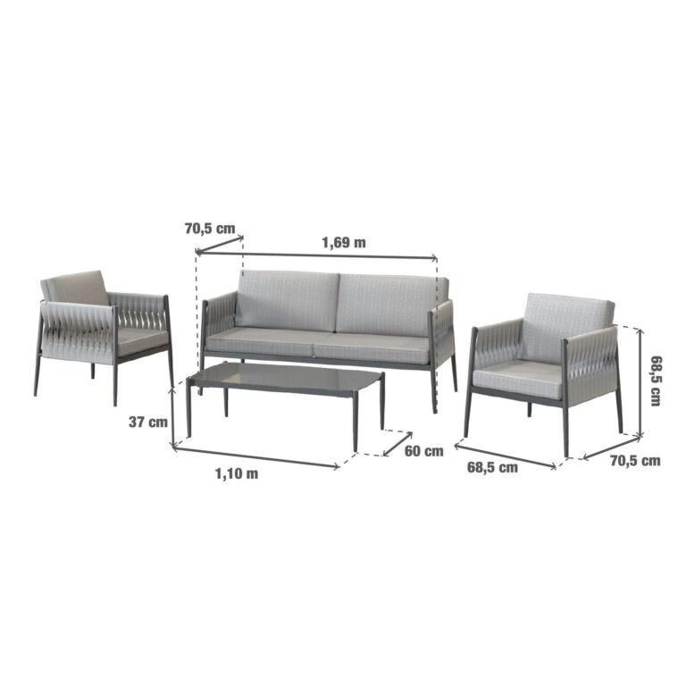 Juego de living para 4 personas Henio, aluminio, gris oscuro.