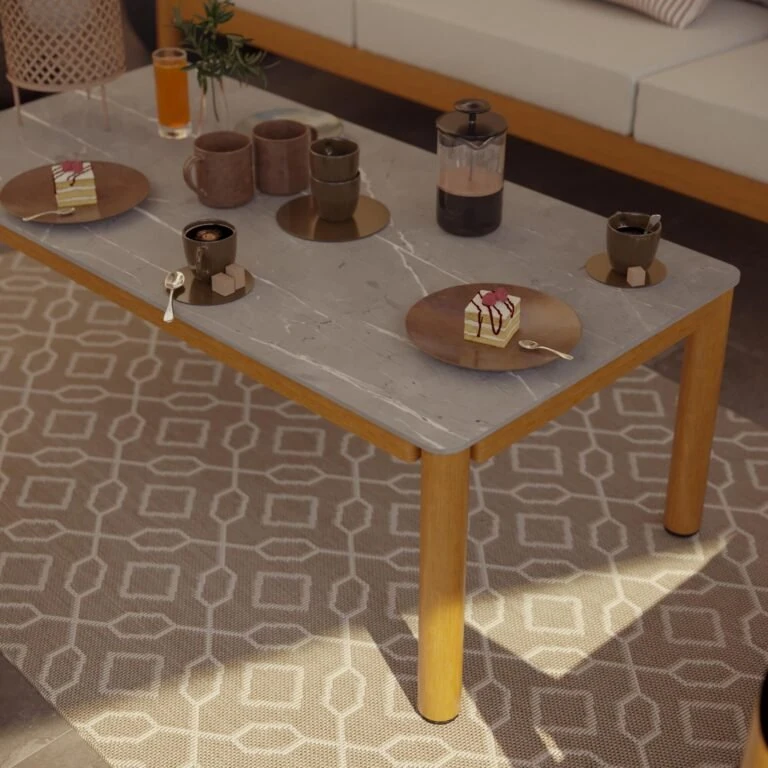 Disfrutá de las comidas familiares de los domingos con estilo y durabilidad gracias a nuestro juego de living de jardín Ares.