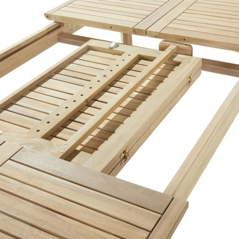 Ideal para recibir a 6 invitados, la mesa Atlas reserva una sorpresa: su bandeja esconde una mariposa extensible que, una vez abierta, permite alojar cómodamente a 2 personas más. Elegante, está fabricada en madera de acacia. Naturalmente resistente gracias a su alta densidad, esta madera exótica cuyo color es similar al de la teca en bruto ofrece sostenibilidad a tus muebles, y eso temporada tras temporada. Sólida y compacta, esta mesa no teme a la humedad ni a los rayos UV, y puede recibir sin problema tus platos más pesados.