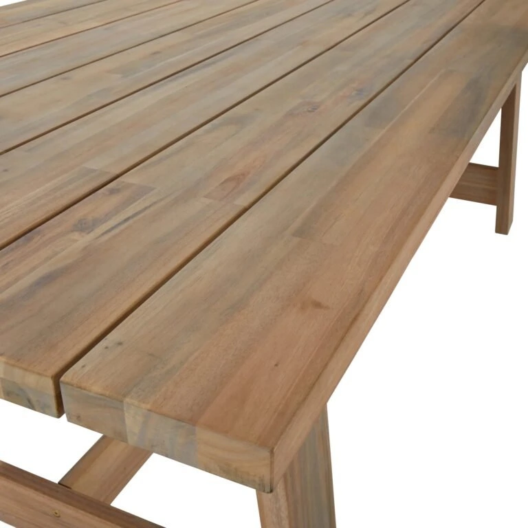 Diseñada para acomodar a 6 personas para una comida campestre, la Mesa Naterial Farm II dará un estilo acogedor y único a tu exterior. Fabricada principalmente en madera de acacia, esta mesa de jardín le ofrece un aspecto elegante apoyado en su color similar a la teca en bruto. Su fabricación en madera y sus tornillos de acero inoxidable le dan una resistencia natural a la humedad, a la intemperie y a los rayos UV, lo que garantiza la durabilidad de tu mesa.