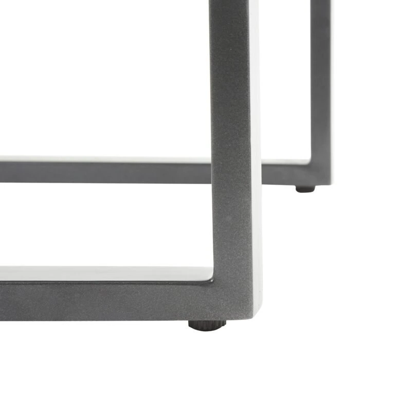 Combine la mesa de comedor NATERIAL Noa con las sillas y sillones Noa, para crear un espacio de comedor exterior en su terraza. Su color antracita y sus líneas puras le dan un toque moderno al encanto propio de la resina tejida. La base de la mesa, en forma de «U», le da un estilo contemporáneo al diseño general. Su vidrio templado es fácil de limpiar. Las patas cuentan con 4 bases ajustables para nivelarla, y proteger a la mesa del contacto directo con el suelo. Los lados del tablero están cubiertos de resina tejida en plano, lo que la protege del agua. La resina está compuesta de PE y resiste amplias variantes de temperatura (de 50 ° a -20 °). La estructura está hecha de acero con recubrimiento en polvo, que la vuelve más resistente a la corrosión. El 60 % de la composición del trenzado de polietileno está extraído de botellas de plástico recicladas. Su composición es de acero galvanizado, para garantizar su vida útil frente a las condiciones climáticas. Para asegurar la calidad y el aspecto de su mueble durante el invierno, se recomienda guardar en un lugar libre de humedad, debajo de un techo o en un galpón, con una funda. Impermeable. De manera similar, se debe proteger a los almohadones de la humedad (en caso de lluvia o durante la noche) cuando no estén en uso. Como parte de la garantía, los repuestos de la banqueta Noa se encuentran en stock. ¡La composición de estos productos está hecha a partir del reciclaje y materiales fáciles de separar! Para proteger el medioambiente, el embalaje de cartón y productos cuya vida útil ha llegado a su fin, deben ser tratados por una empresa que los separe, los reutilice y les dé una nueva vida.