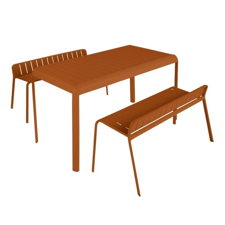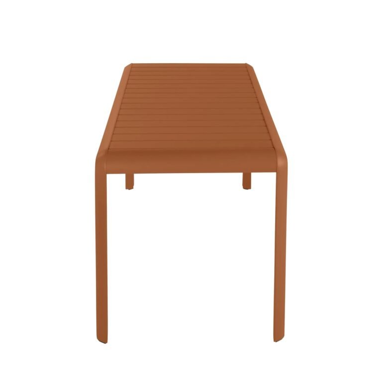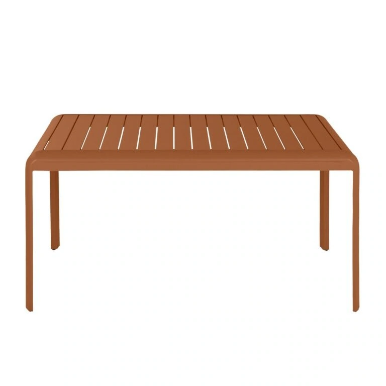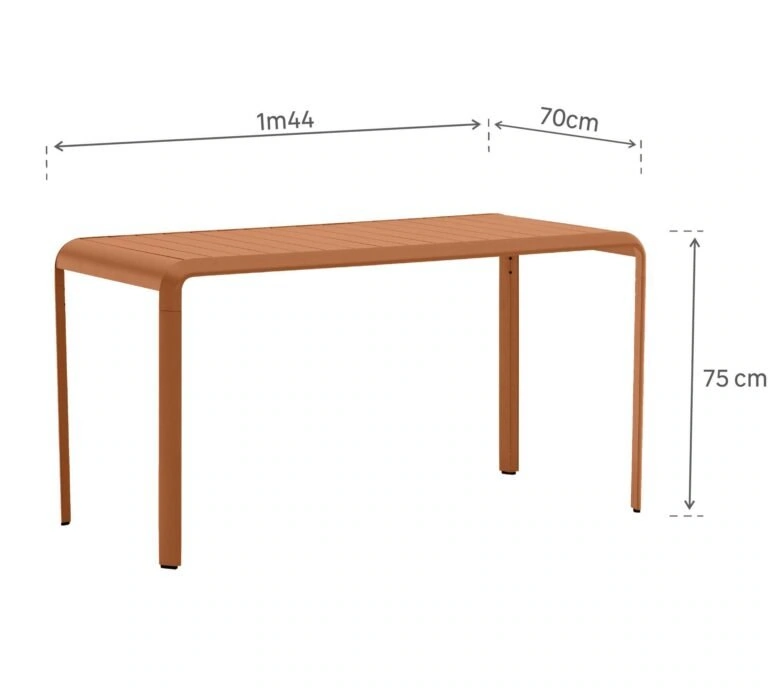 Su diseño de aluminio la convierte en una mesa ligera y resistente. Con sus tornillos de acero inoxidable, puede estar en el exterior todo el año. Se puede añadir una sencilla funda protectora para protegerla de la suciedad del invierno. En el día a día, un paño húmedo y un producto neutro bastan para el mantenimiento de tu mesa.