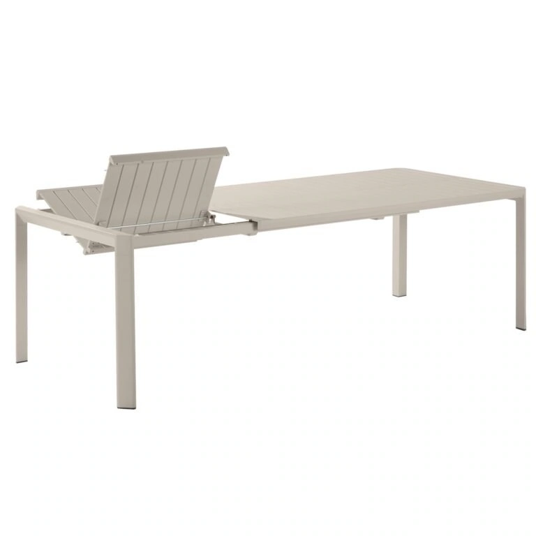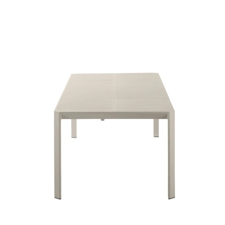 Su diseño en aluminio la convierte en una mesa ligera y resistente. Con sus tornillos de acero inoxidable, puede estar en el exterior todo el año. Se puede añadir una simple funda protectora para protegerla de la suciedad del invierno. En el día a día, un paño húmedo y un producto neutro bastan para el mantenimiento de su mesa.