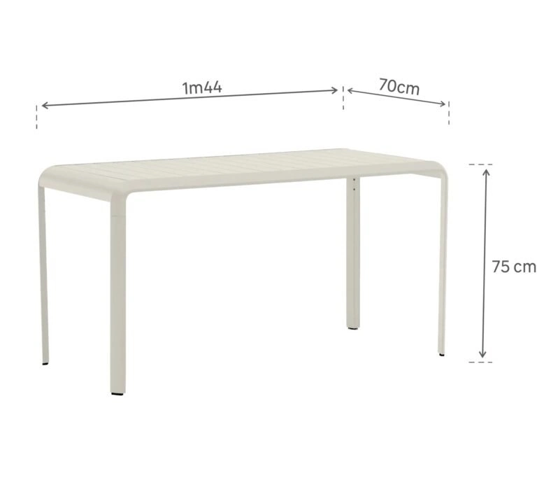 La mesa de balcón Idaho es ideal para disfrutar de su balcón durante todo el año. Para tomar un café por la mañana temprano frente a la salida del sol o para reunirse con los amigos alrededor de un aperitivo, esta mesa le permite optimizar el espacio guardando los asientos directamente debajo de la mesa y acogiendo hasta 4 personas. Fabricada principalmente en aluminio, esta mesa de exterior es resistente a la lluvia y a la niebla salina de la orilla del mar.