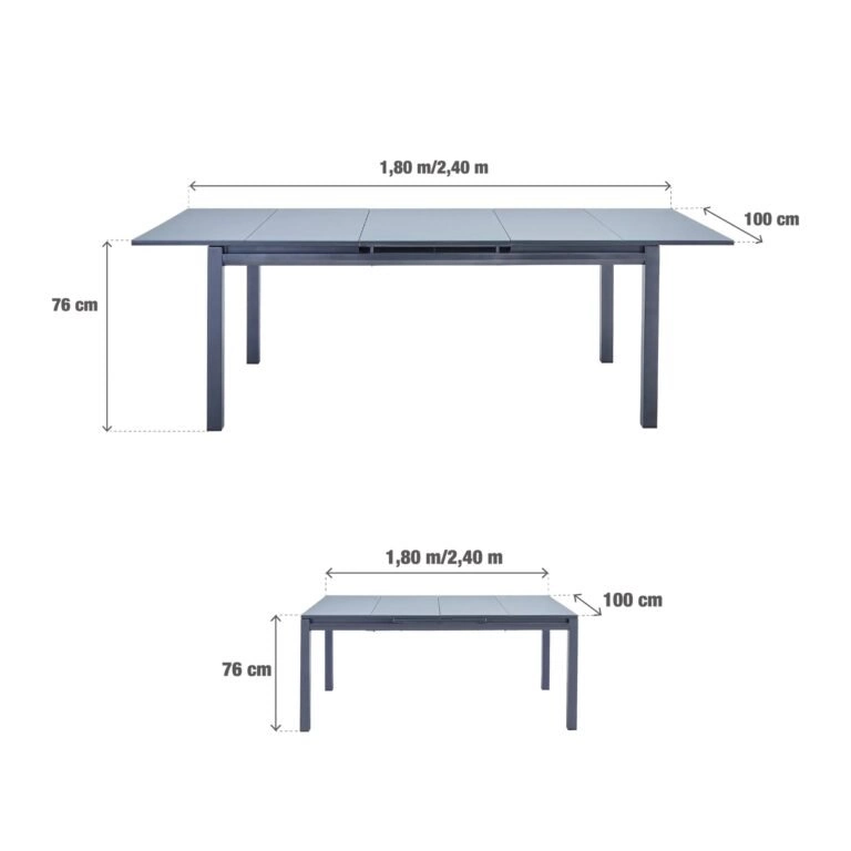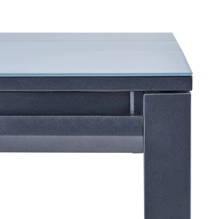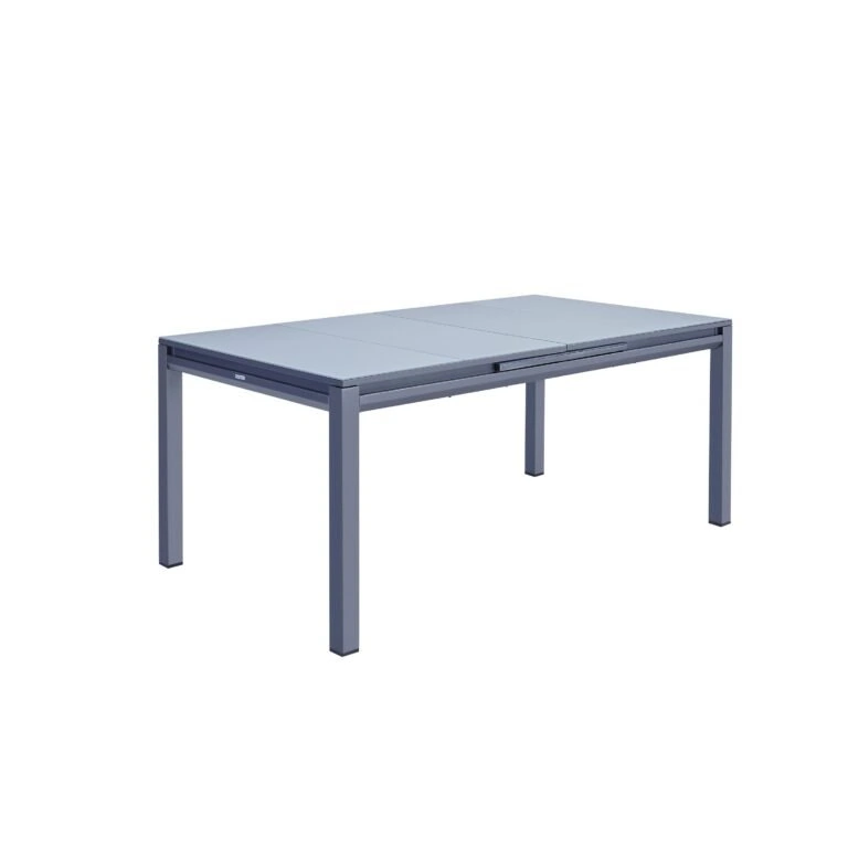 La mesa Odyssea II ha sido diseñada pensando en tus necesidades y es completamente modular. Cuando está cerrada, puede alojar cómodamente a 6 personas. Pero, en caso de que necesites espacio adicional para tus invitados, cuenta con un sistema de extensión automática que te permite agregar 2 asientos adicionales con facilidad. Este sistema es muy práctico y se puede manejar con una sola mano. Además, la estructura de la mesa está hecha completamente de aluminio, lo que la hace resistente a las variaciones climáticas y fácil de mover. El aluminio es un material conocido por su resistencia y ligereza, lo que garantiza una mayor resistencia a la humedad y la oxidación. Con sus 4 patas cuadradas, la mesa proporciona una mayor estabilidad y un amplio espacio para las piernas.