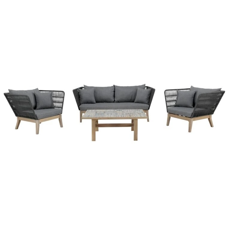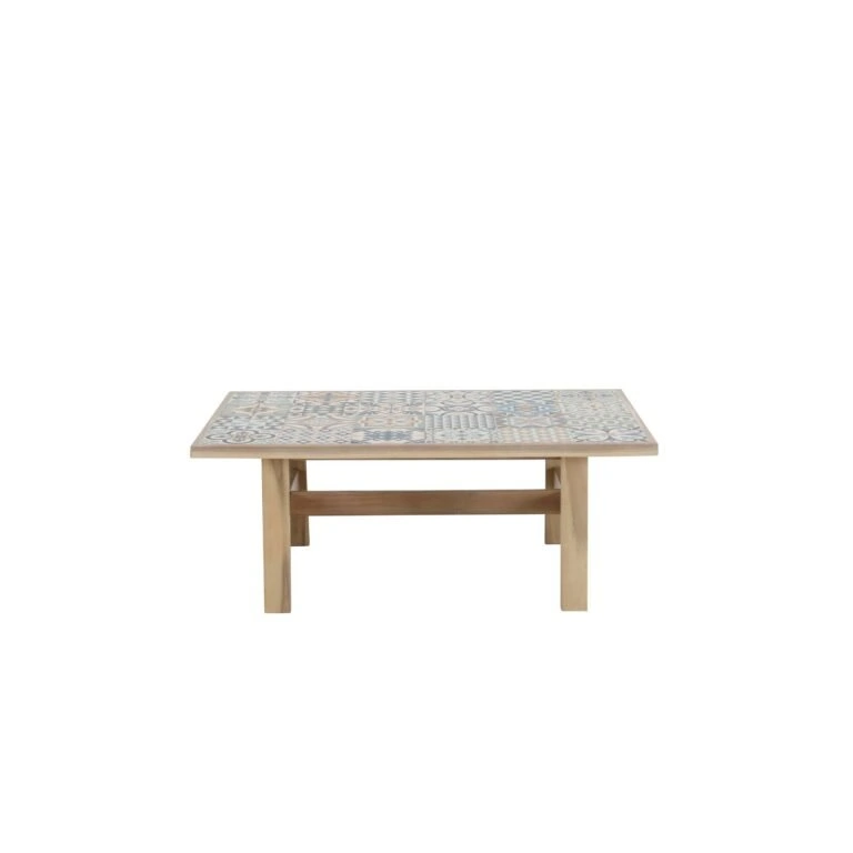 ¡Elija la mesa de centro Soho! Su mezcla de madera de acacia y azulejos la harán protagonista de tus espacios exteriores.