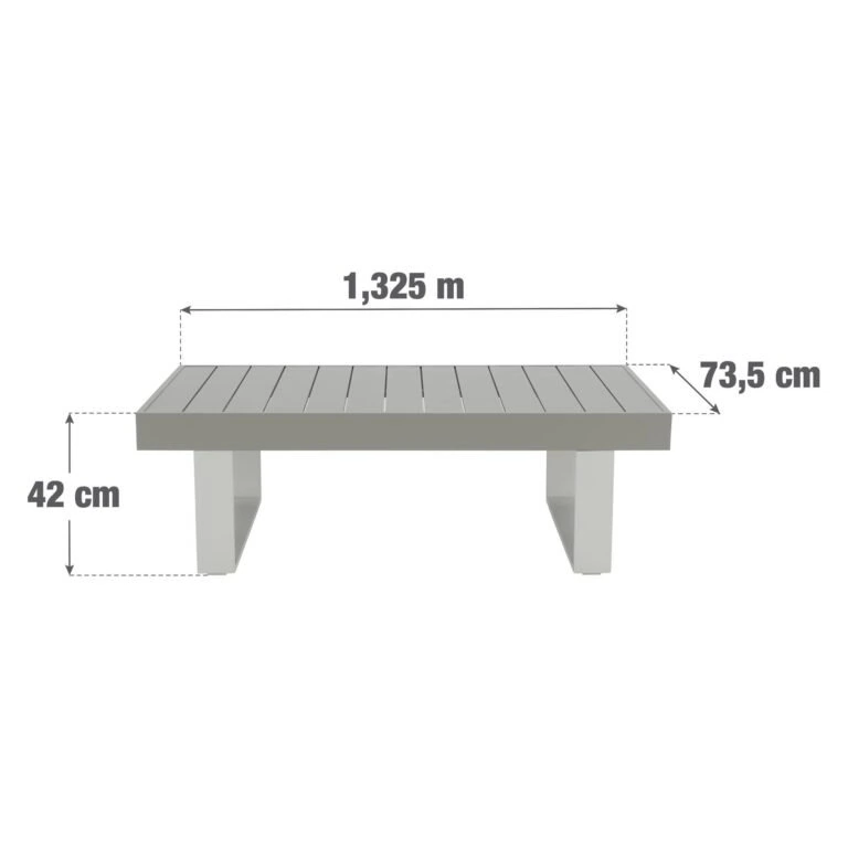 Estética y práctica, la mesa de centro Las Vegas completa su área de relajación al aire libre. Con su diseño en aluminio, es resistente y duradero a las variaciones climáticas.