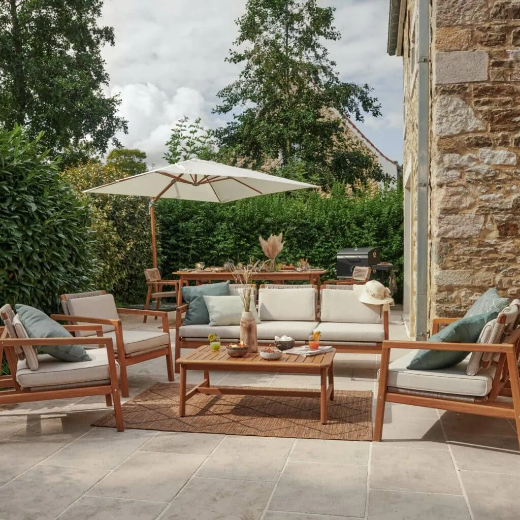 Fabricada con acacia FSC procedente de bosques con gestión responsable y sostenible, la mesa de centro Oasis está diseñada para durar. Para su mantenimiento diario, basta con un paño húmedo y un producto neutro. Para conservar sus muebles, se recomienda guardarlos durante los periodos de inactividad y abonar la madera una o dos veces al año con aceite de teca.
