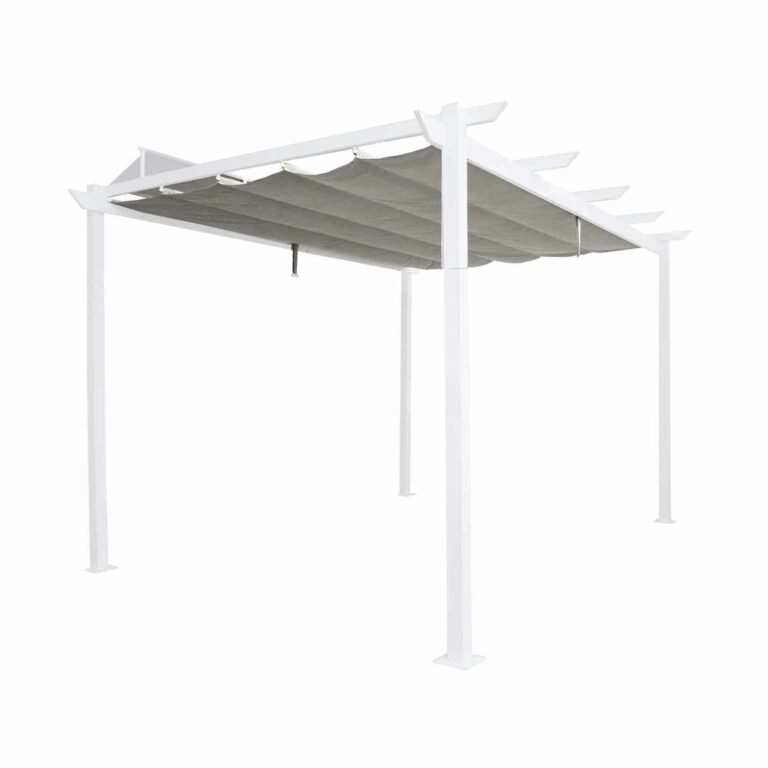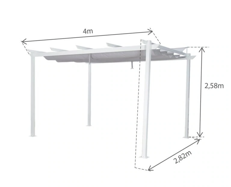 El toldo de la pérgola es reemplazable, lo que alarga mucho su vida útil. Su estructura se puede limpiar rápidamente con un paño húmedo y un producto neutro. Durante la instalación de la pérgola, asegurate de usar clavijas y tornillos de acero inoxidable.