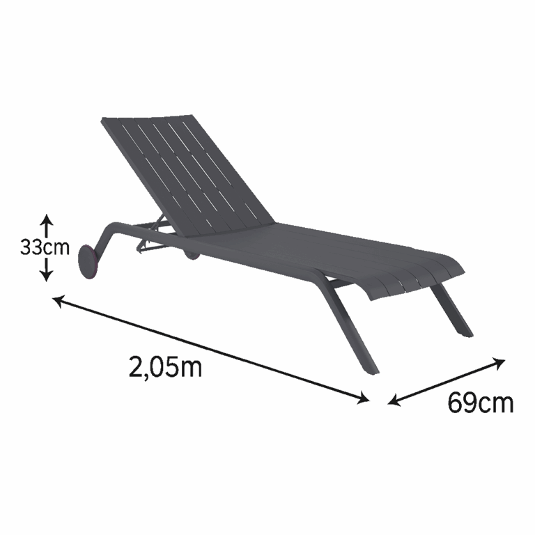 Ideal para disfrutar del sol en tu terraza, la reposera Idaho es un elemento indispensable para su exterior. Sus dos ruedas permiten desplazarla fácilmente para disfrutar del sol a todas horas. Fabricada principalmente en aluminio, esta sólida reposera resiste las inclemencias del tiempo y la niebla salina de la costa; y puede colocarse junto a la piscina y permanecer en el exterior todo el año y sin problema. Su respaldo es basculante en 4 posiciones, para adaptarse a cada una de tus actividades.