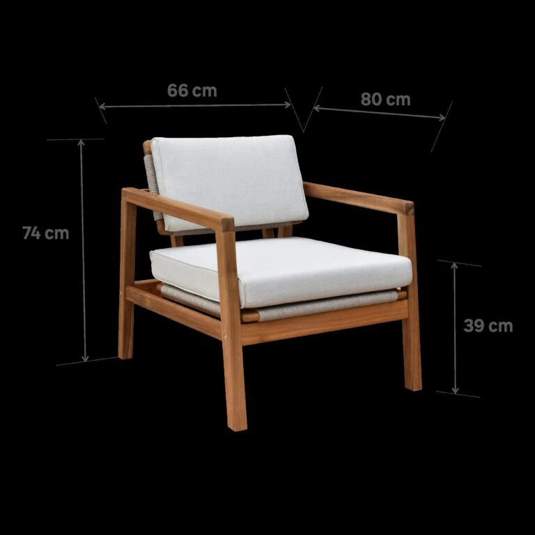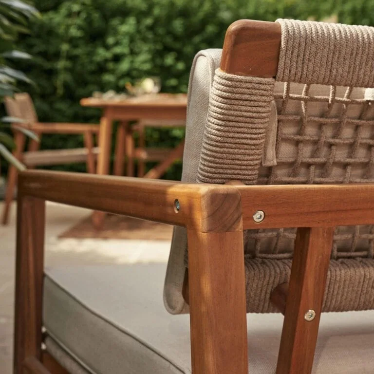 La gama Oasis se distingue por su madera natural de acacia con un suave acabado miel, que aporta carácter a su espacio exterior. La combinación de acacia, cuerda y almohadones color crudo ofrece un resultado único a su terraza. Combine estos sillones con el resto de la gama Oasis para crear un espacio de relajación armonioso en un ambiente tropical.