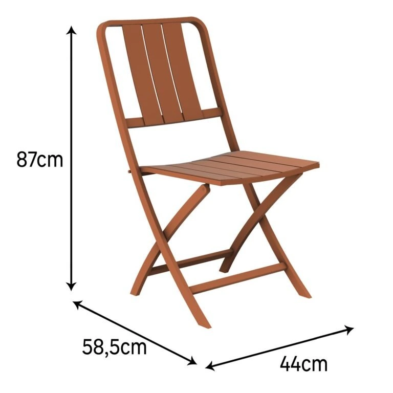 Su diseño de aluminio la convierte en una silla ligera y resistente, fácil de plegar y trasladar. Con sus tornillos de acero inoxidable, puede estar en el exterior todo el año. Puede añadirse una sencilla funda protectora para protegerla de la suciedad del invierno. La práctica diaria, un paño húmedo y un producto neutro bastan para el mantenimiento de su silla.