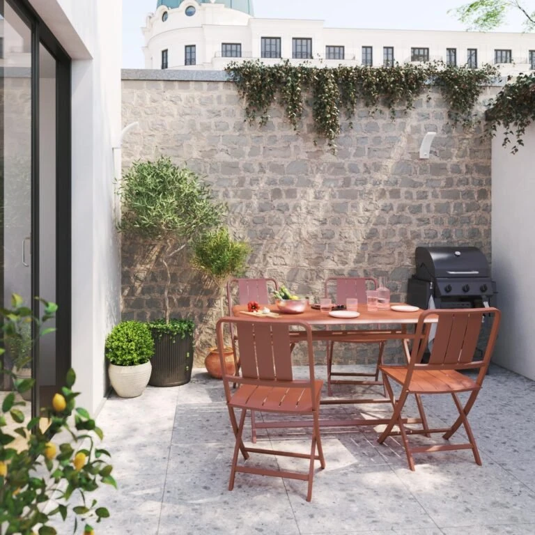 Ideal para disfrutar de una comida o un café al aire libre, la silla de jardín plegable Naterial Idaho encontrará fácilmente un lugar en tu balcón. Fabricada principalmente en aluminio, esta silla es resistente a la lluvia, a la niebla salina de la costa y a la torpeza cotidiana. Una vez plegada, puede guardarse fácilmente, y montarse rápidamente cuando lleguen sus invitados.