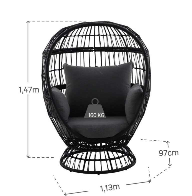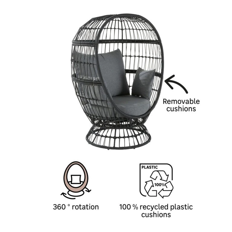 EGG CHAIR NATERIAL JUNO STEEL WICKER SPUNPOLY 97X113X147 DARK GREY