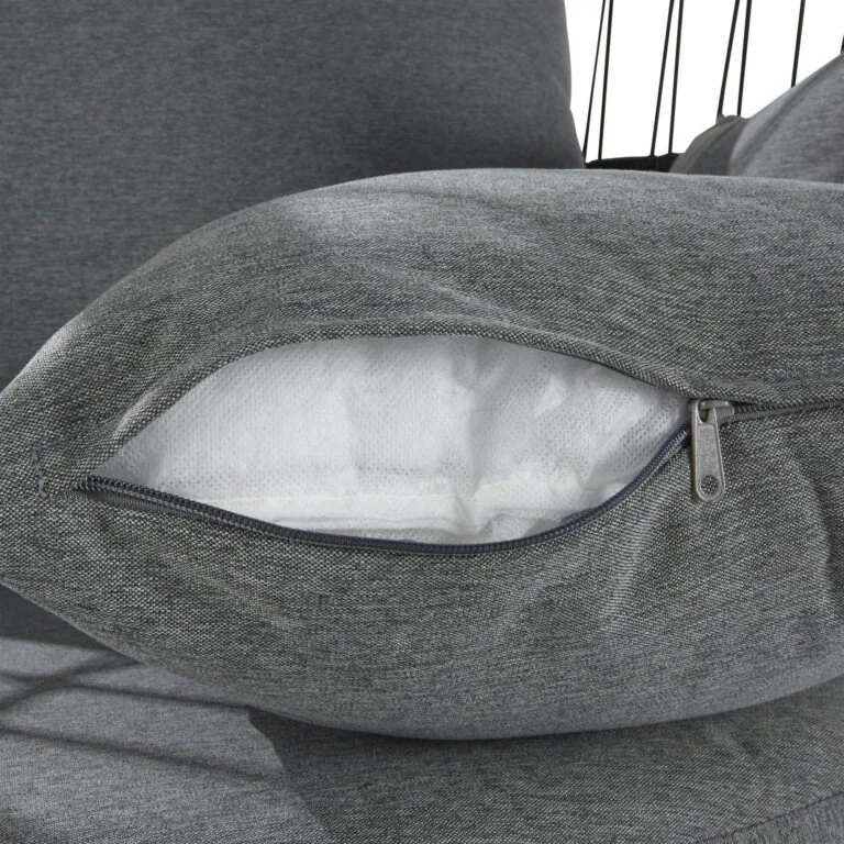 La funda del almohadón es lavable e hidrófuga para evitar manchas accidentales. El relleno de los almohadones del respaldo está fabricado con materiales 100% reciclados.